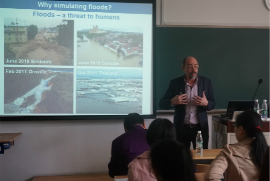 2018年4月24日上午,应我院徐宗学教授邀请,国际水文科学协会(IAHS)主席、维也纳科技大学(TU Wien) Günter Bl?schl教授做客“水科学大讲堂”。徐宗学教授、刘海军副教授、胡立堂副教授、庞博副教授、郝增超博士,地学部段青云教授、缪驰远副教授、陈波博士等我校师生近40人参加了本次学术报告会。