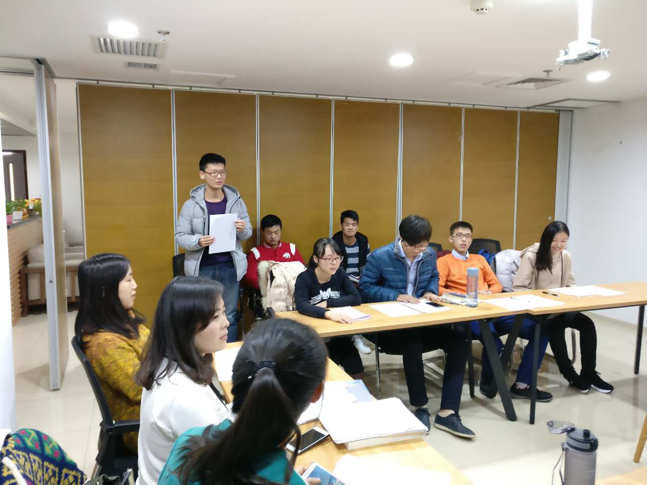 2016年11月28日下午13点30分,我院 16级硕士党支部在院会议室召开全体党员大会讨论王伟、秦道清、黄莹三位同志的转正申请,黄佳老师莅临指导,本次大会由党支部书记张园园主持。